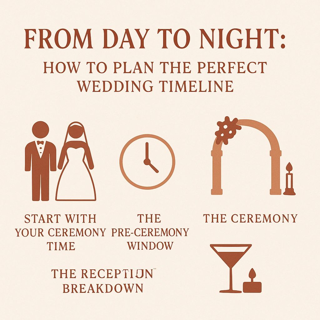 A well-structured wedding timeline keeps your big day stress-free and perfectly organized.